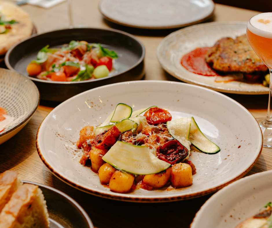 Begin with burrata, house-made focaccia and goat cheese croquettes to share, followed by your choice of main — from handmade pasta and pizza to market fish — paired with your choice of house wine, beer, or a non-alcoholic beverage.